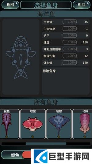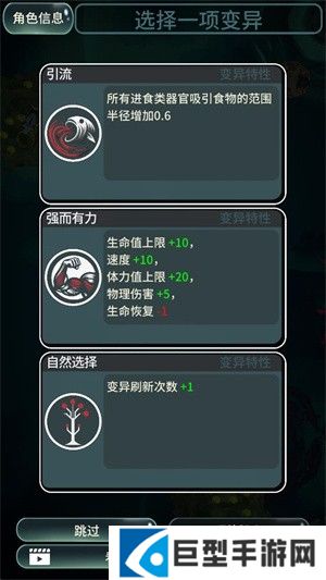 5、吞噬其他鱼可以获得经验,提升等级后就可以变异,你可以选择一项变异能力来强化自己。