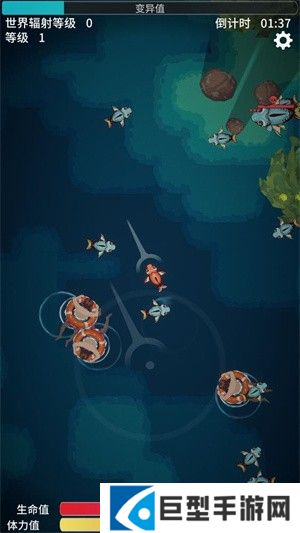 1、从一条普通的小鱼开始,通过吸收辐射和吞噬其他生物,逐步进化成为深海中的巨兽。