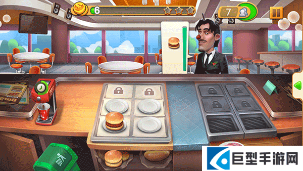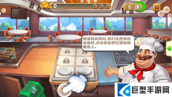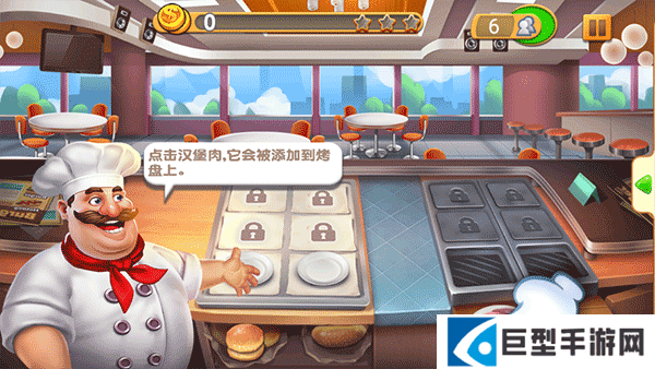 3、你的目标是赚够45金币,开业了先烹饪一份汉堡吧!