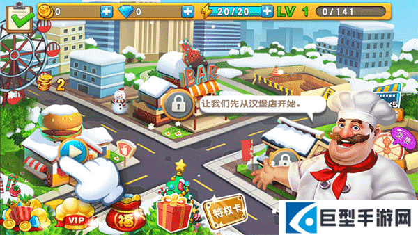 1、玩家需要建造一家属于自己的快餐厅,点击“?”进入餐厅,先从汉堡店开始;