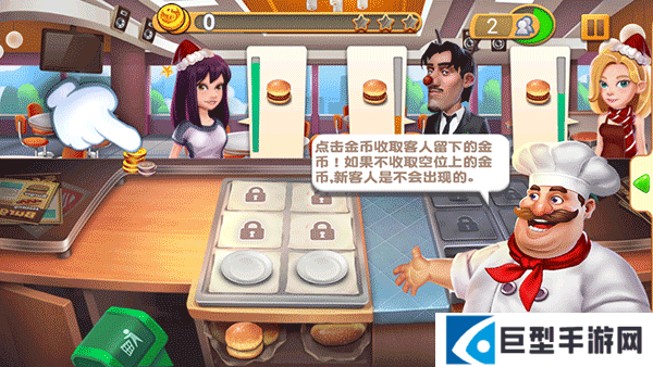 8、点击金币收取客人留下的金币,如果不收取空位上的金币,新客人是不会出现的!