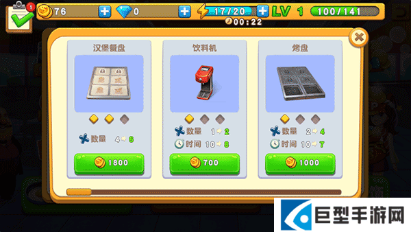 10、有了钱你就可以升级你的厨具,升级之后就有了更多的位置放置食物!
