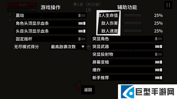 将辅助功能中的敌人生命值,敌人伤害和敌人速度调到最低(25%)就完成了。