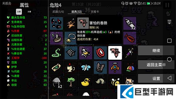 因为小编是在后几波才开始注意到香肠所带的元素伤害的,所以这一局打伤害的伤害并不高。不过有了喷火器之后,一些小怪还是可以秒的。当然可以冲撞的大怪也能杀不过需要4~5秒。