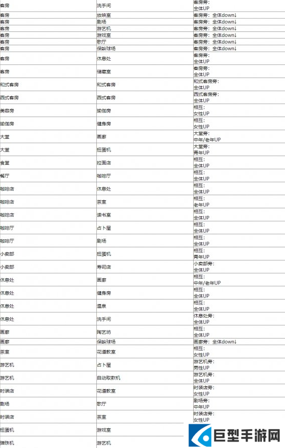 根据建筑设施的契合度,不同的摆放方法会带来不同的人气与收入。