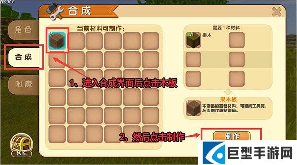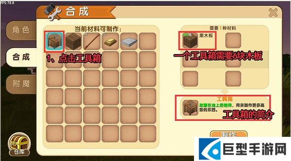 加工出木板后在合成界面就可以制作工具箱了。