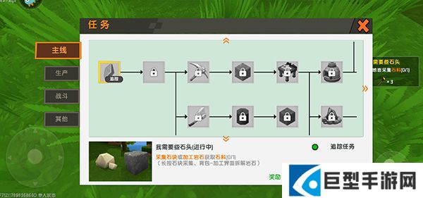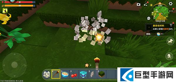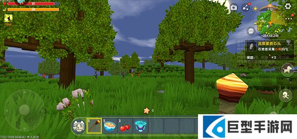 3、进入游戏之后,右上角有任务提示,根据任务提示收集需要的材料;