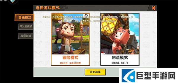 2、在首页点击开始游戏,创建一个新的世界选择冒险模式进入到游戏之中;