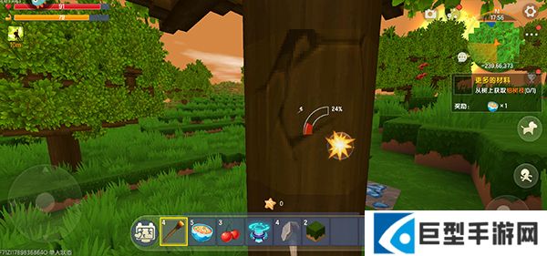 7、从树上获取细树枝,完成这个任务需要先来到树木旁边,通过砍树获取相应的细树枝;