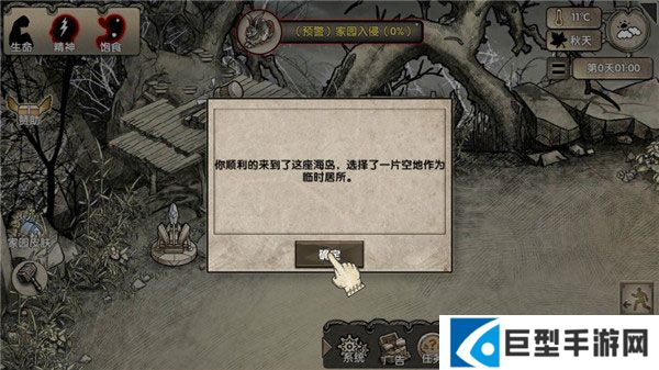5、这时候你顺利的来到了这座海岛,选择一片空地作为临时居所。