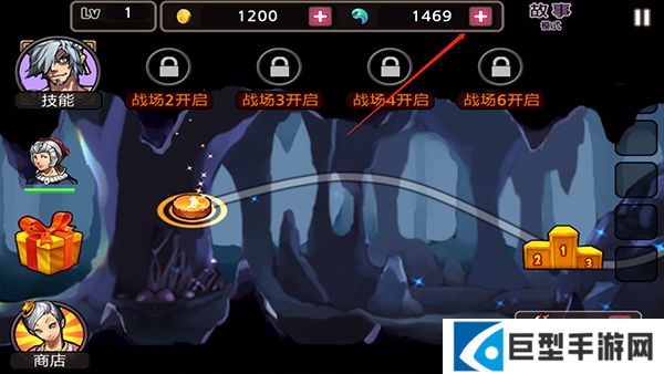 2、之后随意进入游戏画面,点击上方的曲玉加号键打开购买窗口;