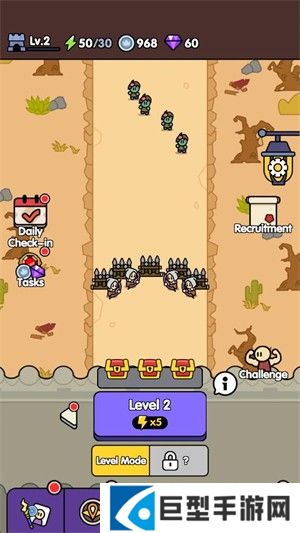 1、首先在52PK下载安装好捍卫者军团游戏,点击level按钮开始闯关,我们布置好士兵抵御敌人入侵