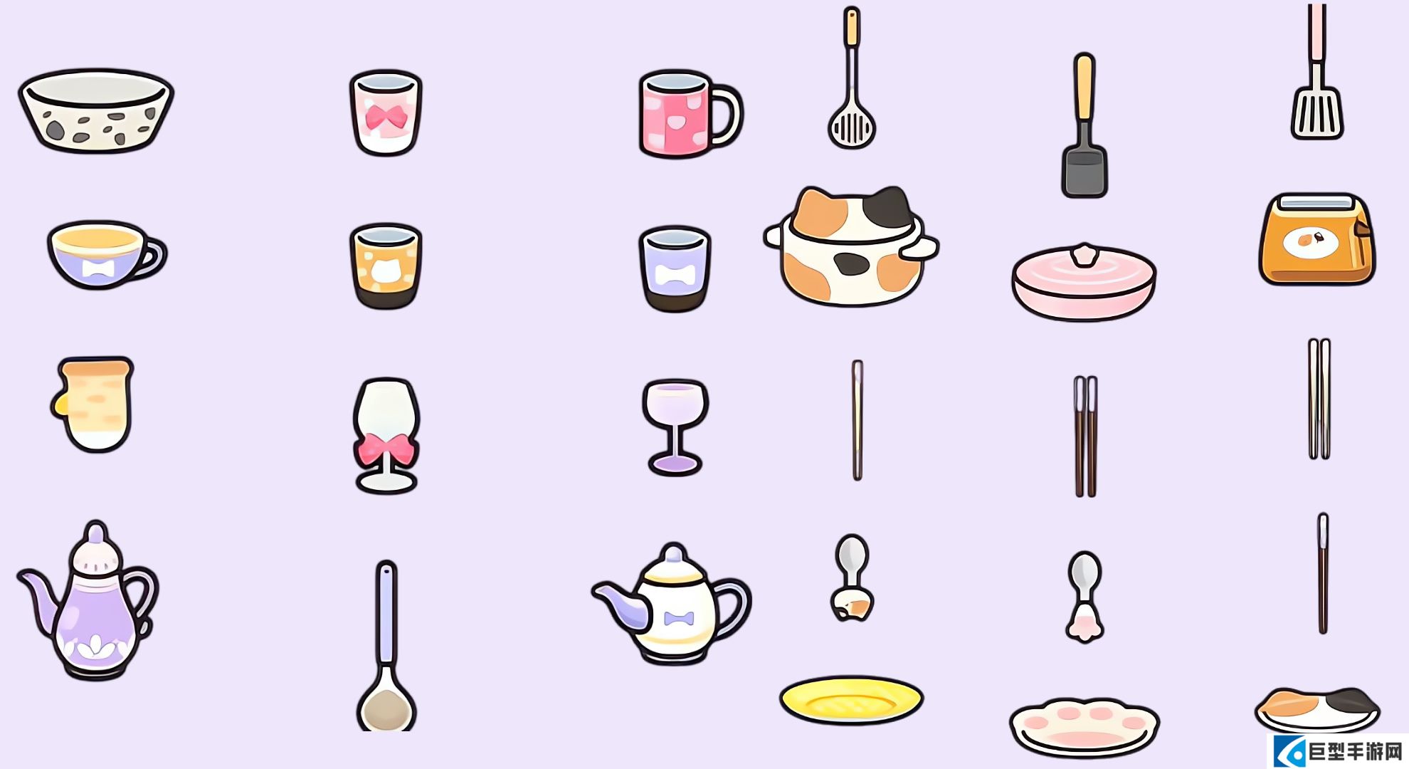 8、厨房用品也有很多新的,比如杯子、叉子、面包机、猫猫盘子等等。