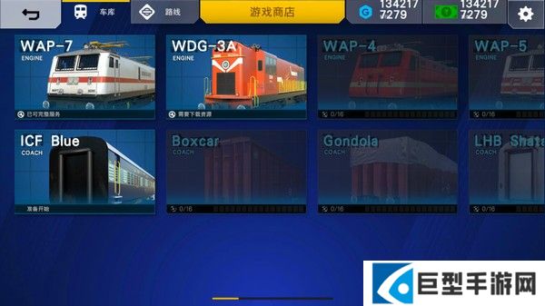 2、在车库,你可以了解到各种印度火车的模型,可自由进行选择。