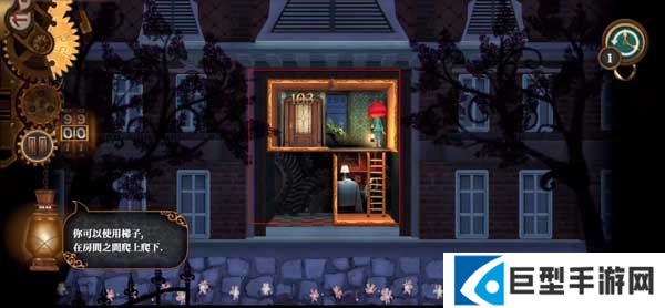 6、第三关则出现了梯子,梯子可以在房间之间爬上爬下,用来切换不同的空间。