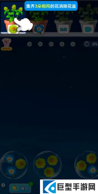 1、只需点击相同的花朵让它们在同一个花盆结合即可完成消除。