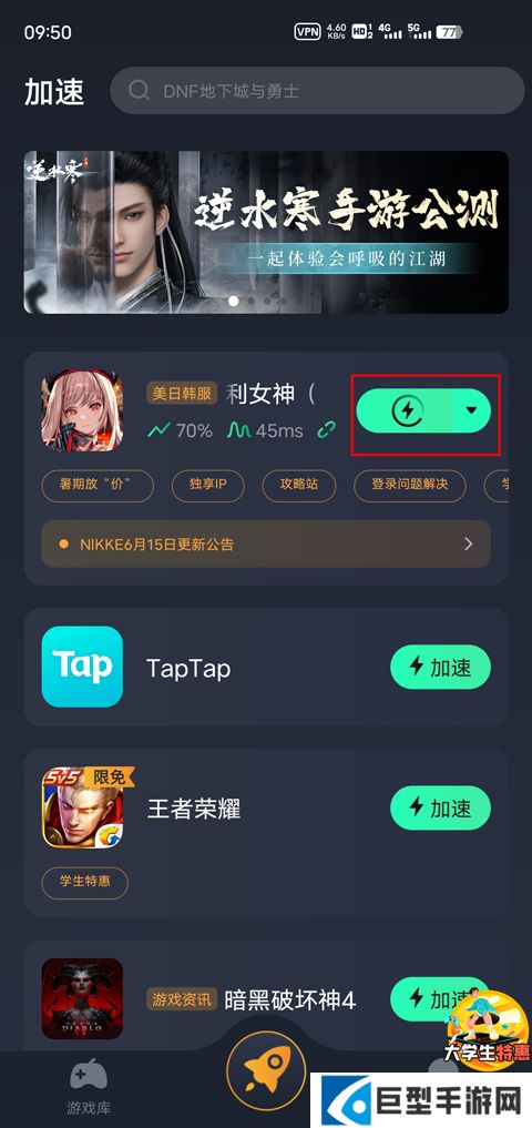 1、首先打开胜利女神NIKKE手游国际服,游戏需加速器启动。