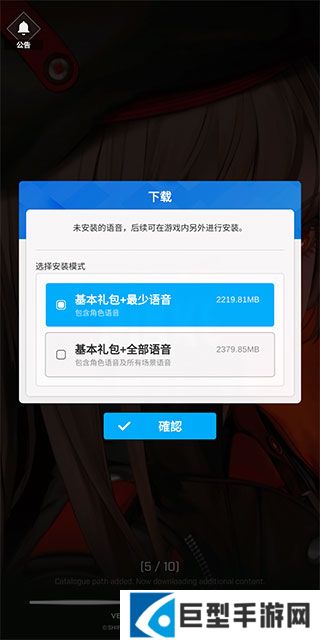 4、然后就是下载游戏数据以及语音包,接近2G,推荐WiFi环境下下载;