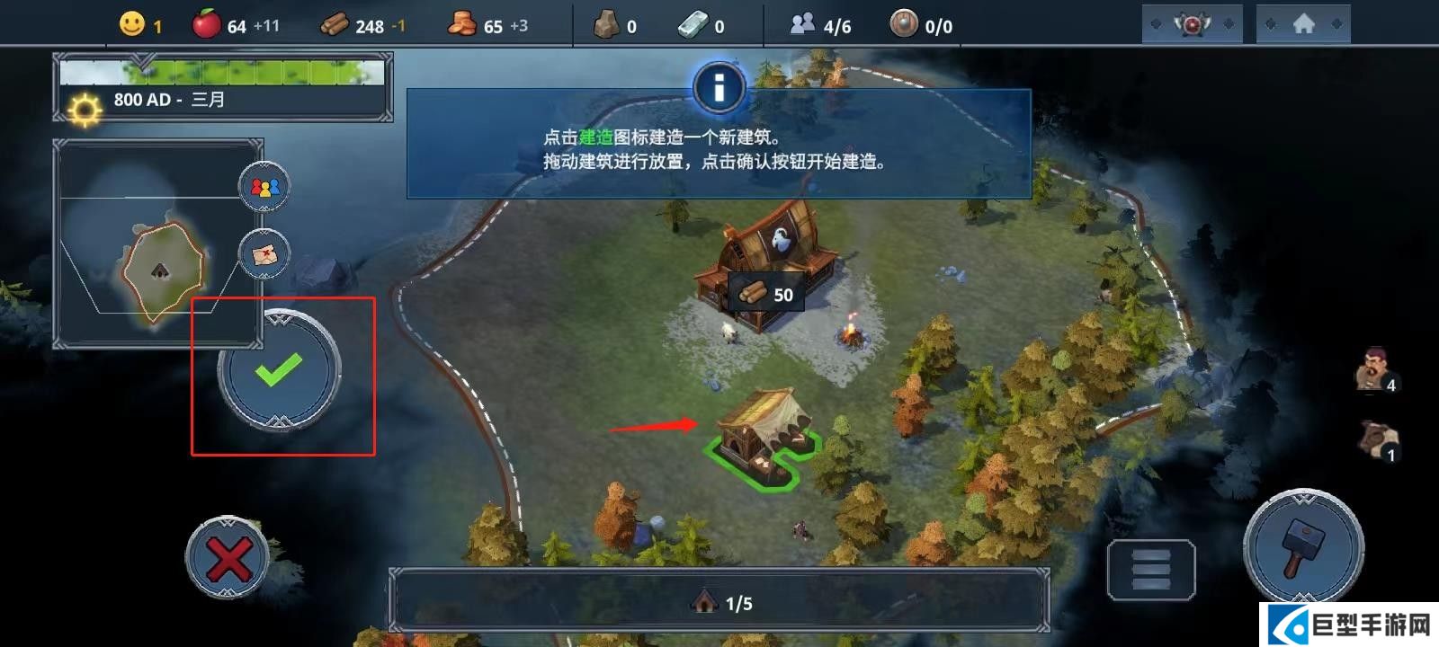 6、然后拖动建筑进行放置,点击确认按钮就可以开始建造;