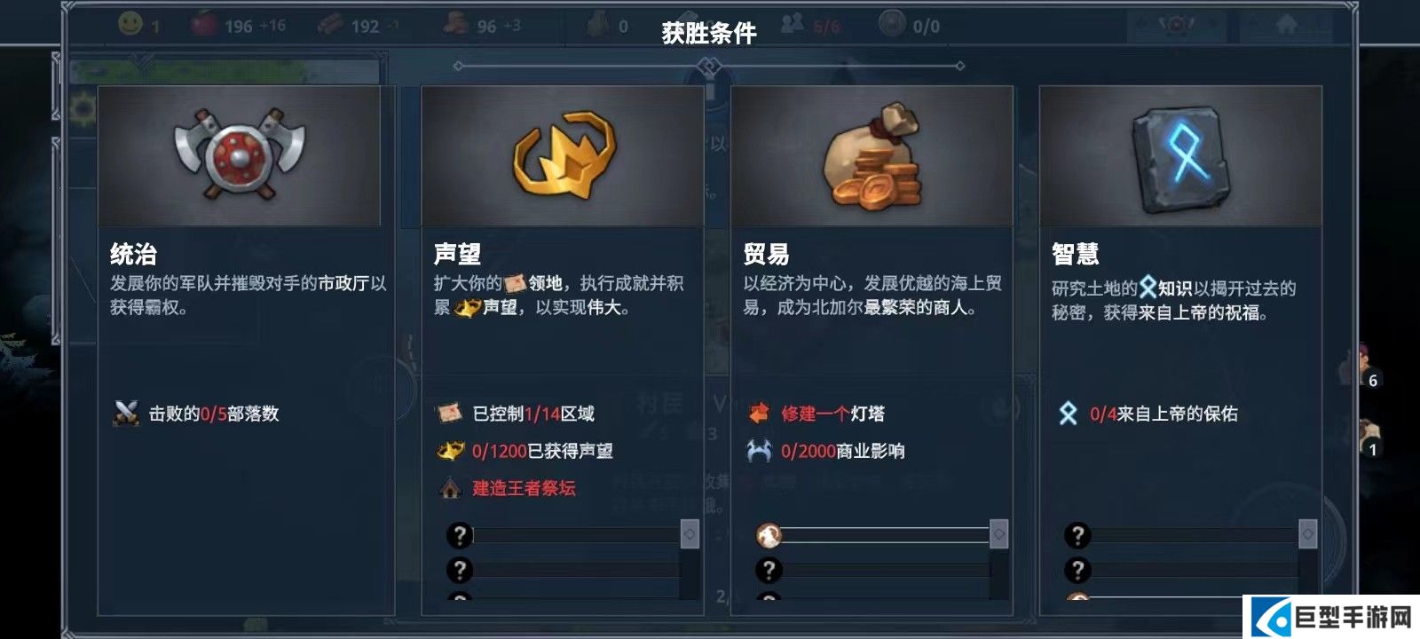 8、点击右上角第一个图标可查看获胜条件;