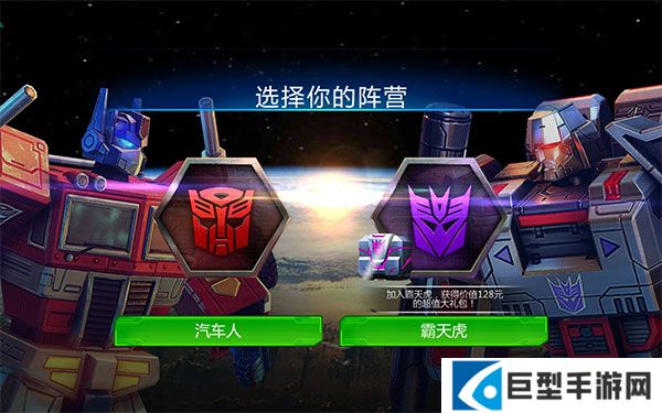 1、汽车人和霸天虎两大阵营选择。