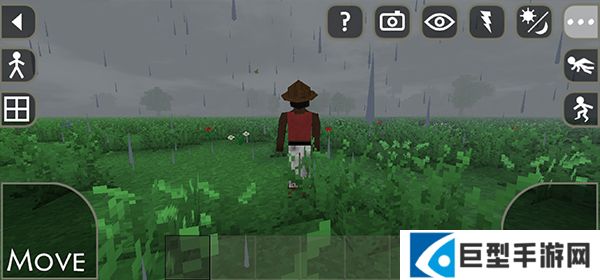7、右上角的功能按钮分别可以控制角色的视角、控制场景的天气等,我们要做的就是在这个地图中存活下去。
