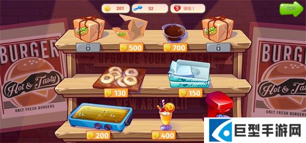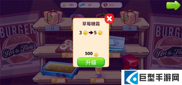 5、随着后面关卡难度的提升,我们也要开始升级厨具和食品;