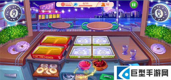7、我们在回到游戏中就可以看到所有的厨具和食品都得到了提升,这样制作起来也会快很多;