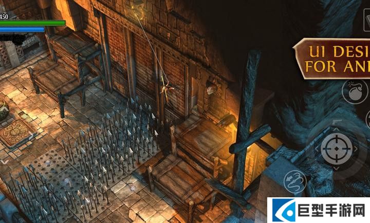 标枪既是武器也是攀爬工具。面对高墙时,将标枪射入墙面作为垫脚石,逐步攀爬。