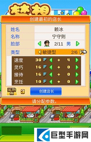 -初始人物的选择与属性点的分配会影响店铺运营,因此在选定人物时要先确定好店铺类型。