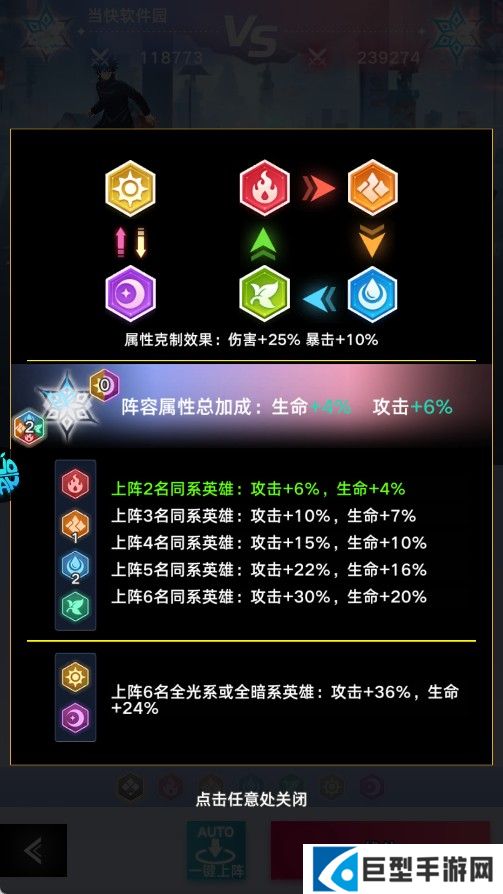 3、部分角色之间会有羁绊加成收益,解锁关键被动,获得更强大的战斗力。