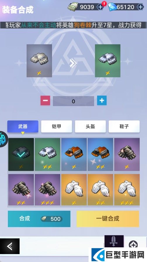 1、武器装备种类多样,可以合成相同的装备武器来进行升级进化。