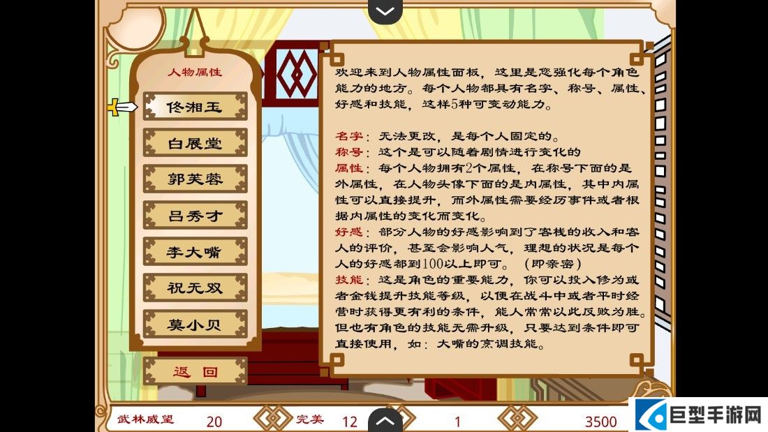 7、查看到每个人物的属性;