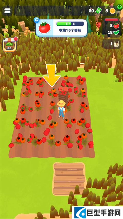 1、进入农场主快开荒中文版游戏后,拖动屏幕解开移动角色,靠近树木即可采集资源。