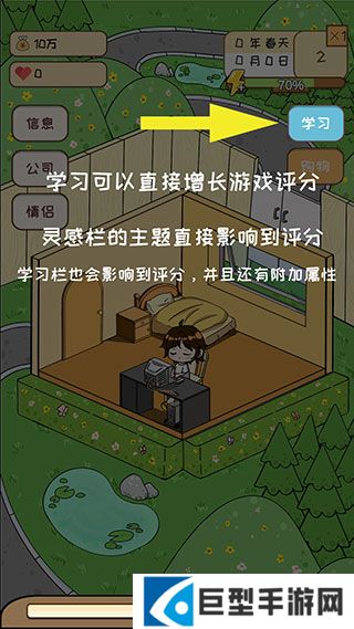 4、学习可以直接增长游戏评分,灵感栏的主题直接影响到评分,学习栏也会影响到评分,并且还有附加属性。