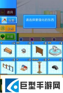 使用方法是将挖掘所获得的道具当做素材,对设施进行强化,等级提升后客人们使用该设施时获得的道具就会增加,这也影响整个乐园的整体能力值。