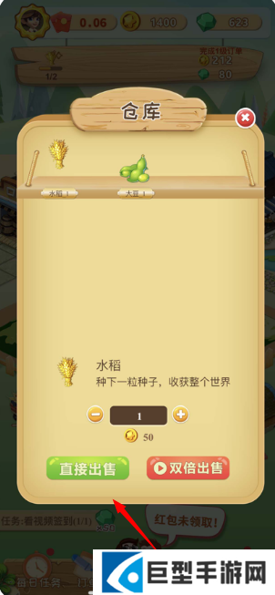 2、接着在仓库系统里选择你要出售的作物点击出售即可