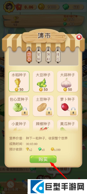 2.完成游戏中的订单,售卖不同的农作物获得经济