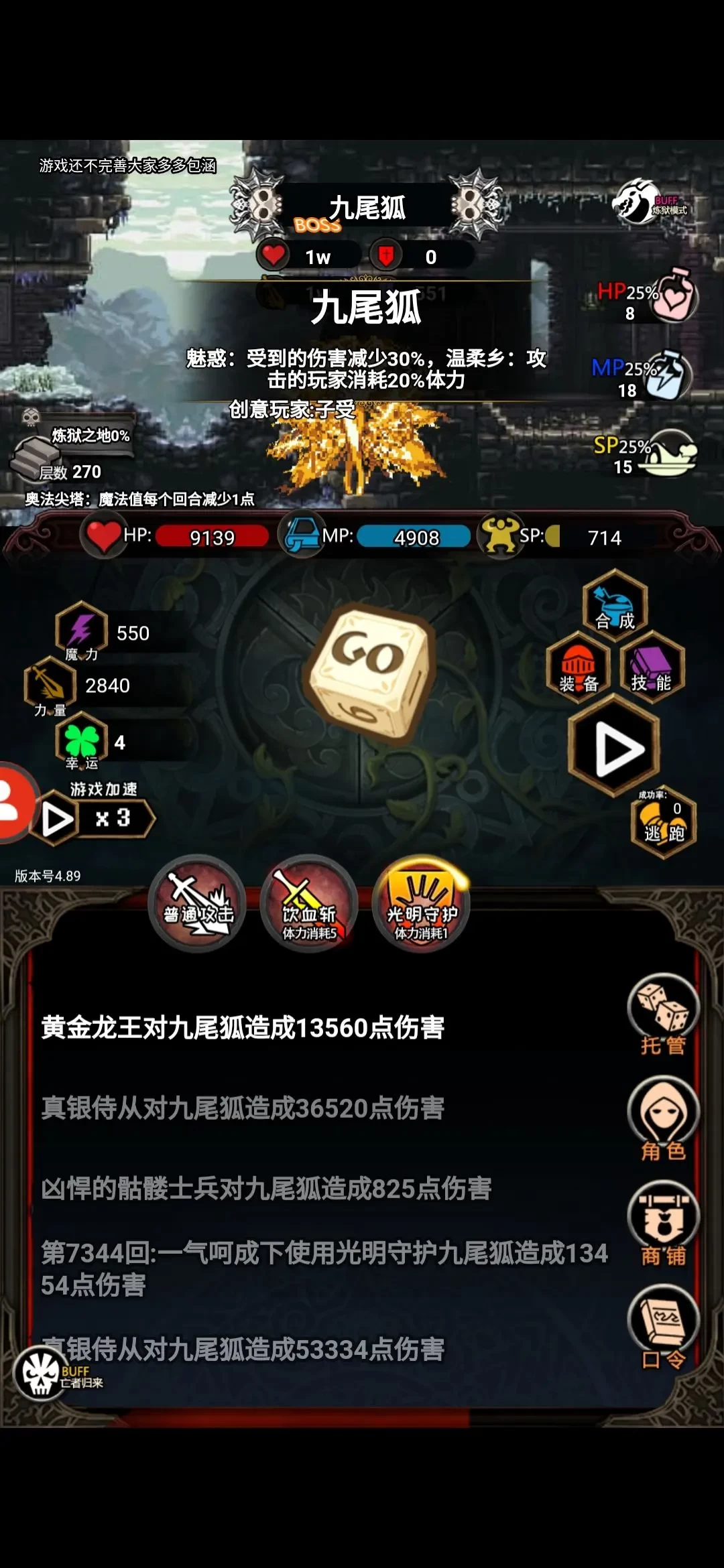 81、光明之剑+光明长袍(教会长袍强化)+光明权杖+天使光环=光明天使 击杀+2善 魔力 +4生命 法术增伤100 每点善良抵消伤害1 1000血 100力 50魔