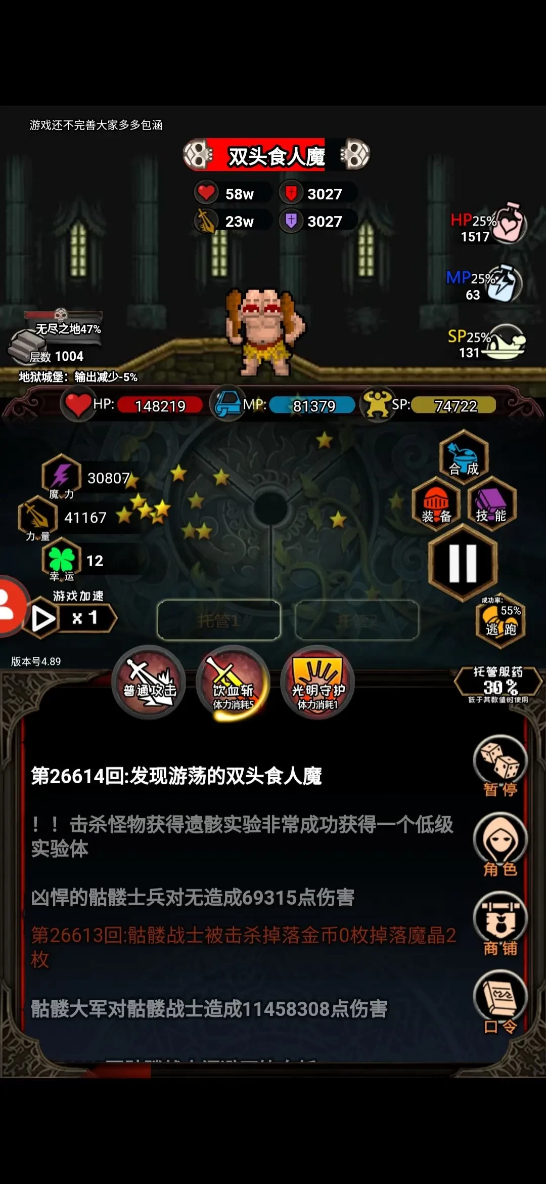 33、弑星鲲5000层双击龙神吞噬进化=混沌虚鲲 30%概率格挡击杀获得3维+30魔力+10力量+15附带3维3%回复 力8000 魔8000 三维15000 增伤300 减伤90