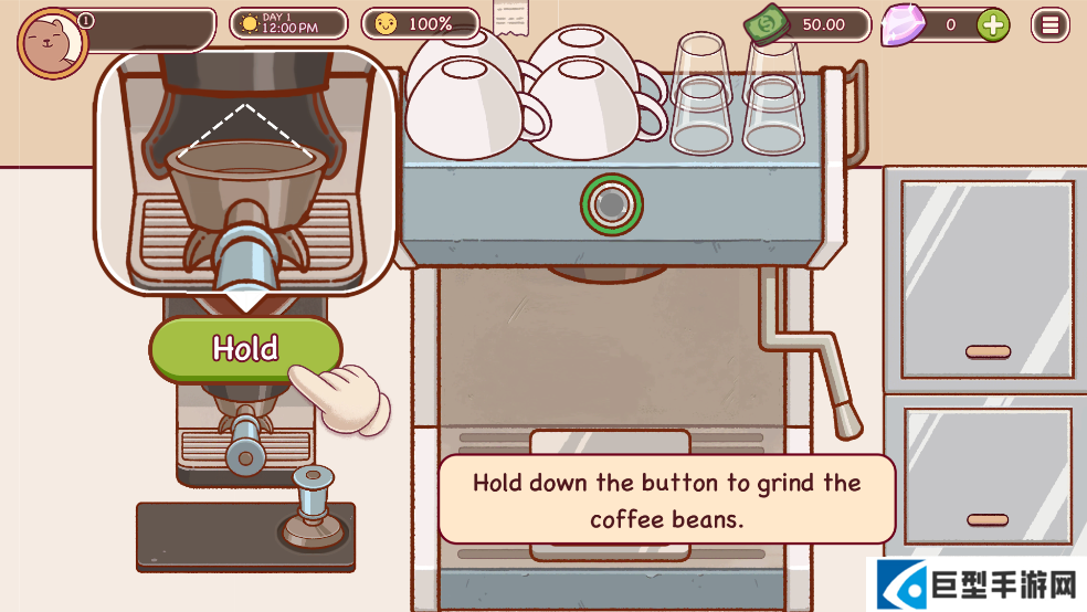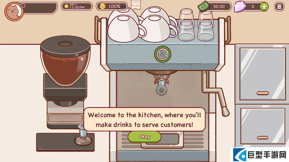 1、玩家需要在厨房用咖啡机为顾客制作咖啡