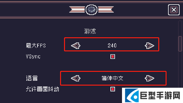 2、在语言设置位置,将语言切换为简体中文即可,除此之外最大FPS值还可设置为最大值,以获得更高的流畅体验;