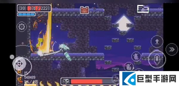 3、游戏采用了横版移动操作,屏幕左边轮盘控制角色移动,右边则为攻击、跳跃、冲刺等键位;
