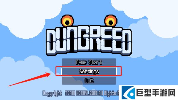 1、打开贪婪地牢手机版,进入游戏显示语言为英文,我们点击下图所示位置打开设置;