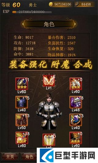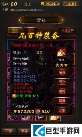 5、各种级别的装备,可以通过铁匠铺打造,也可通过打地图怪物获得