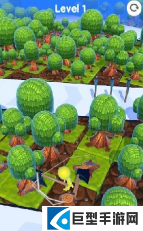 1.游戏的玩法非常简单直接,玩家只需要用摇杆操作小人收集斧头砍伐树木就可以了