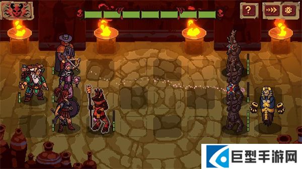 3、进入关卡后玩家需要通过前后交换英雄的方式来击退敌人,每当英雄从后面一排切换到前面一排时,前排的所有英雄都会进行攻击。