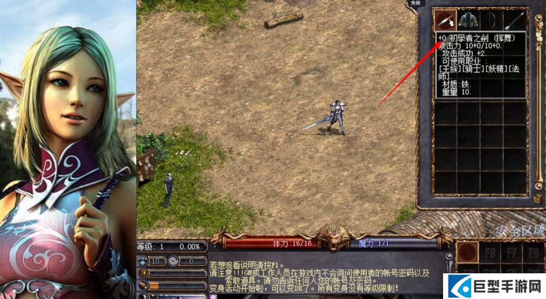 2、进入到游戏当中后点击背包可以穿上新手装备提升属性