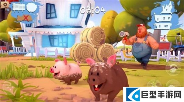 3只小猪对抗1位农场主小猪负责沾上一身泥把环境弄的一塌糊涂,农场工负责抓住小猪洗干净他们!