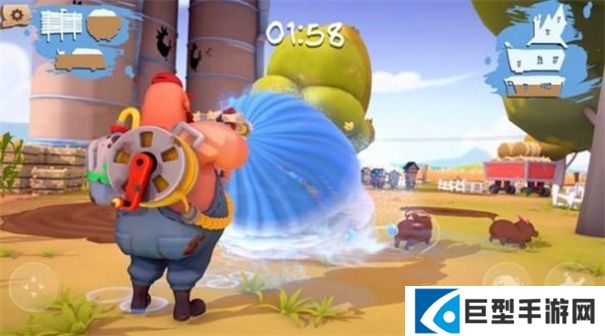 农场沾上的泥巴越多比分就越高。小猪会留下脚印,农场主可以顺着脚印追击。